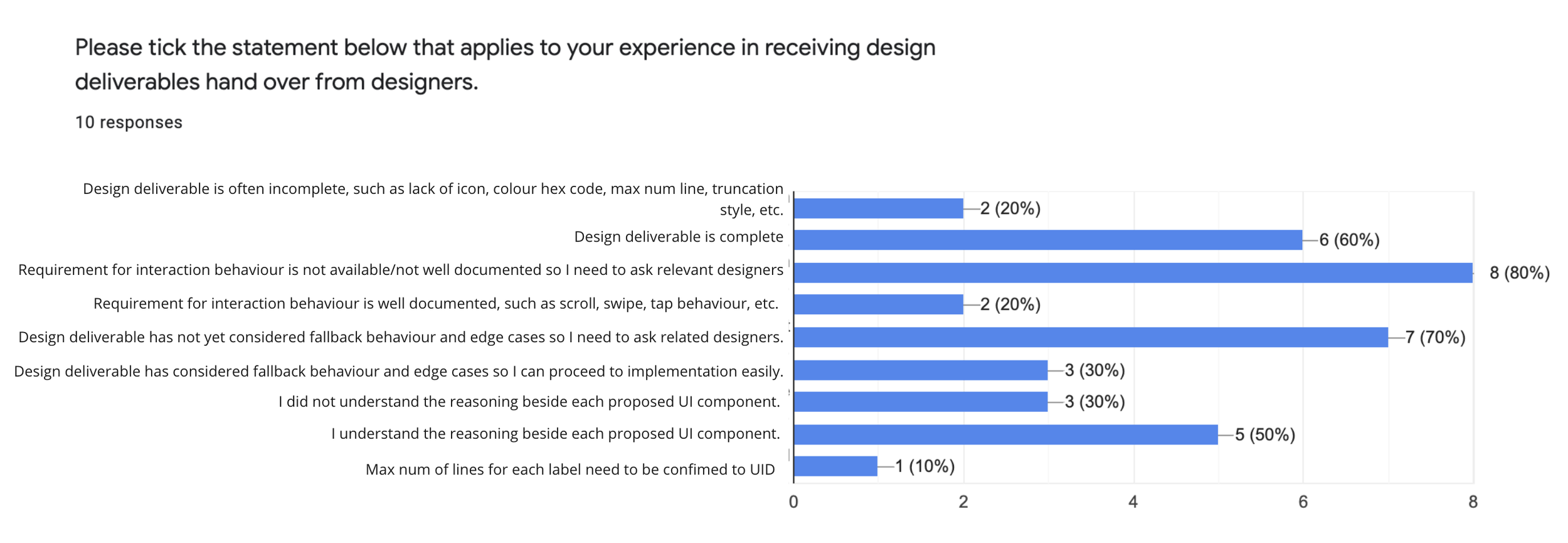 The first thing we want to discover is how well the current system works and which area can be improved. We ran a survey directed to Design Team and Engineering Team. The survey results in potential improvement area.